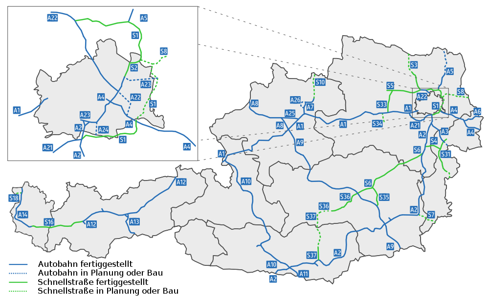 Карта дорожной сети Австрии