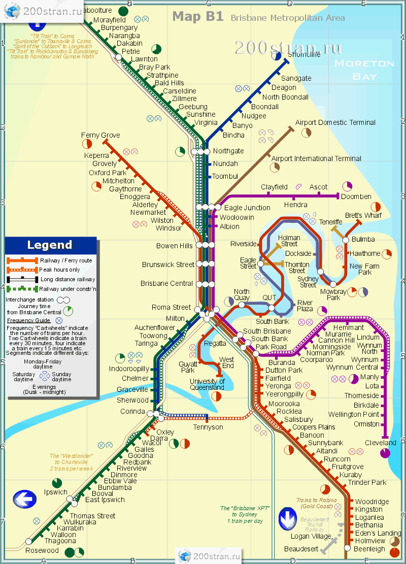 Схема железных дорог и паромов Брисбена | The scheme of the railways and ferries in Brisbane