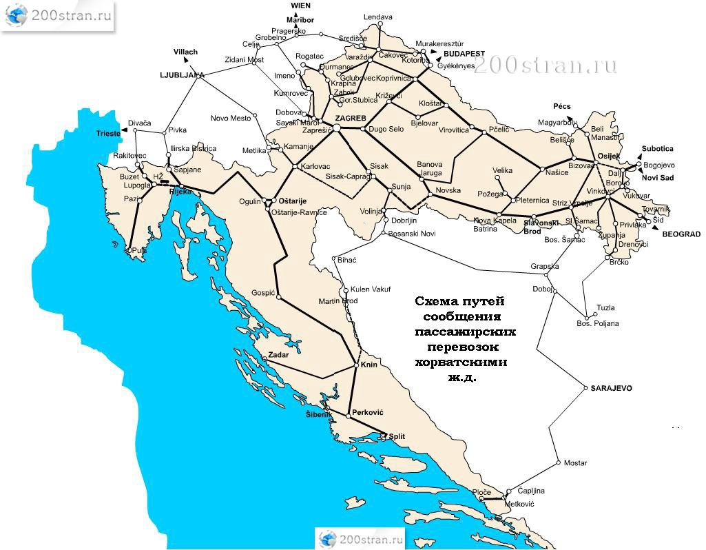 Схема железных дорог Хорватии | The scheme of railways Croatia