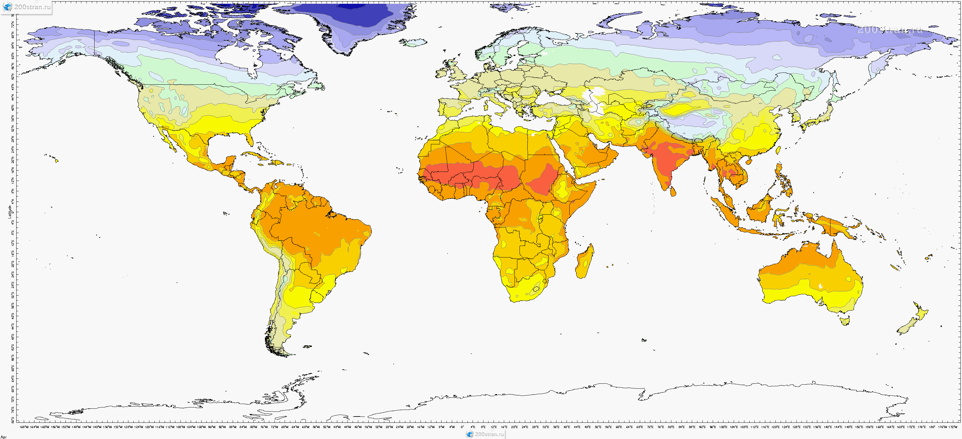 /   Климатические карты мира   /   Среднемесячные температуры апреля на планете