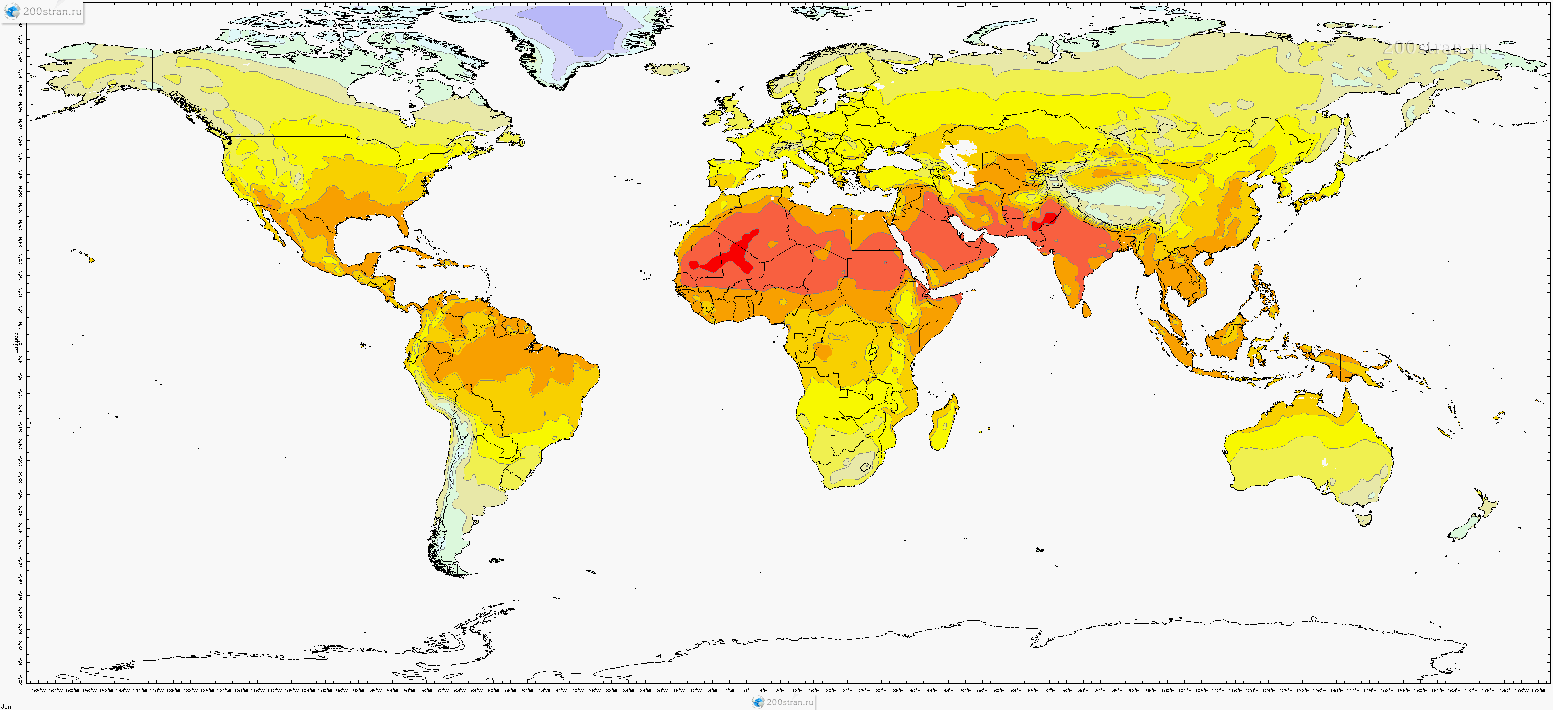 /   Климатические карты мира   /   Среднемесячные температуры июня на планете