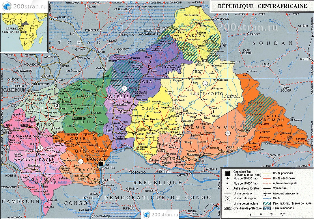 Карта административного деления Центральной Африканской Республики (ЦАР)