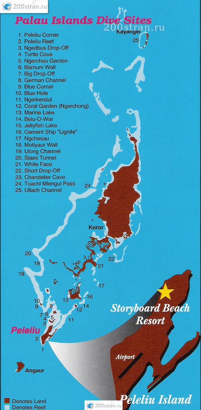Отличная карта лучших мест для дайвинга на Палау - затанувшие корабли и многое другое
