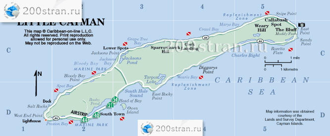 Карта Каймановых островов - остров Cayman Brac