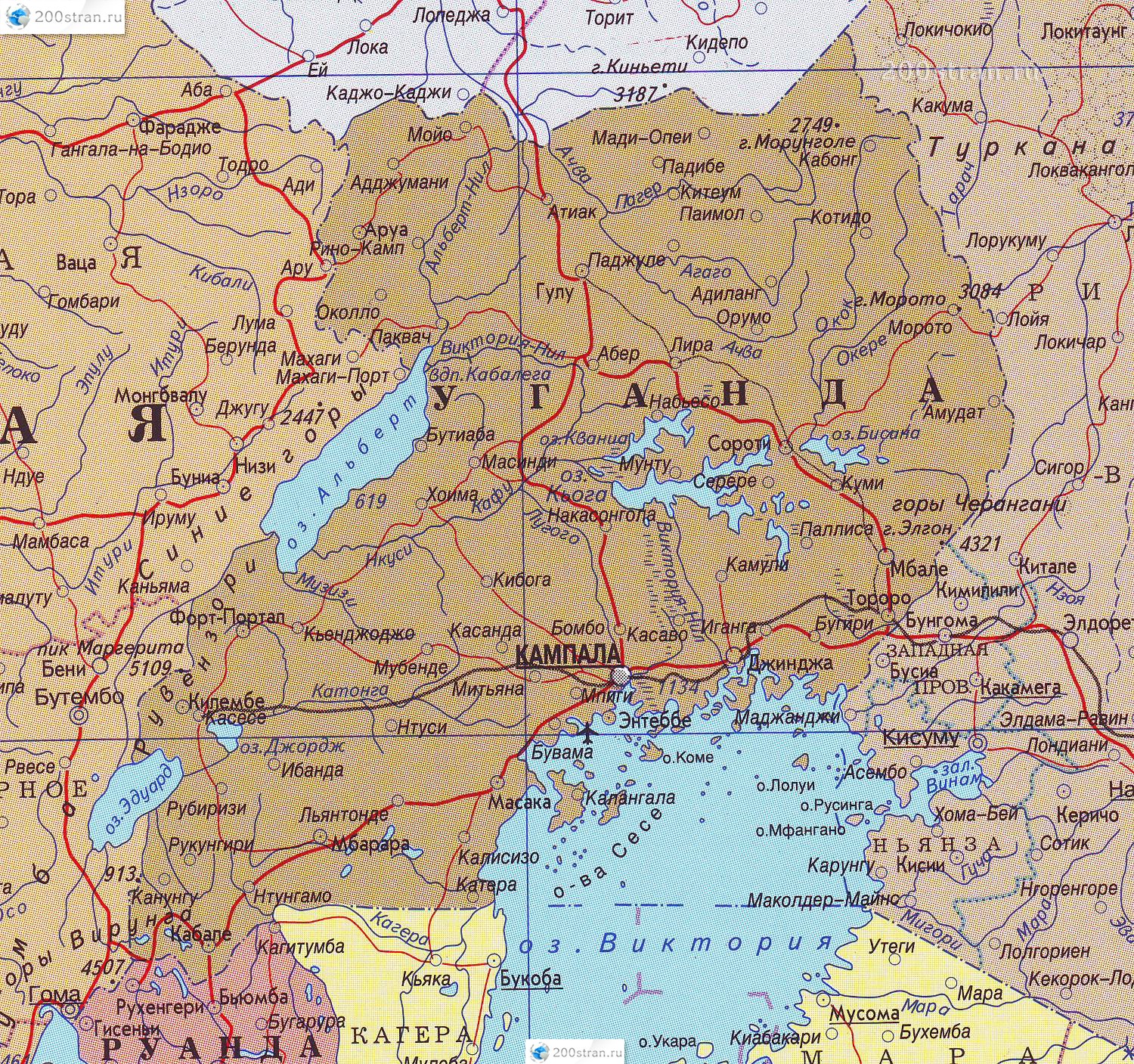 Карта Уганды на русском языке | Map of Uganda in Russian