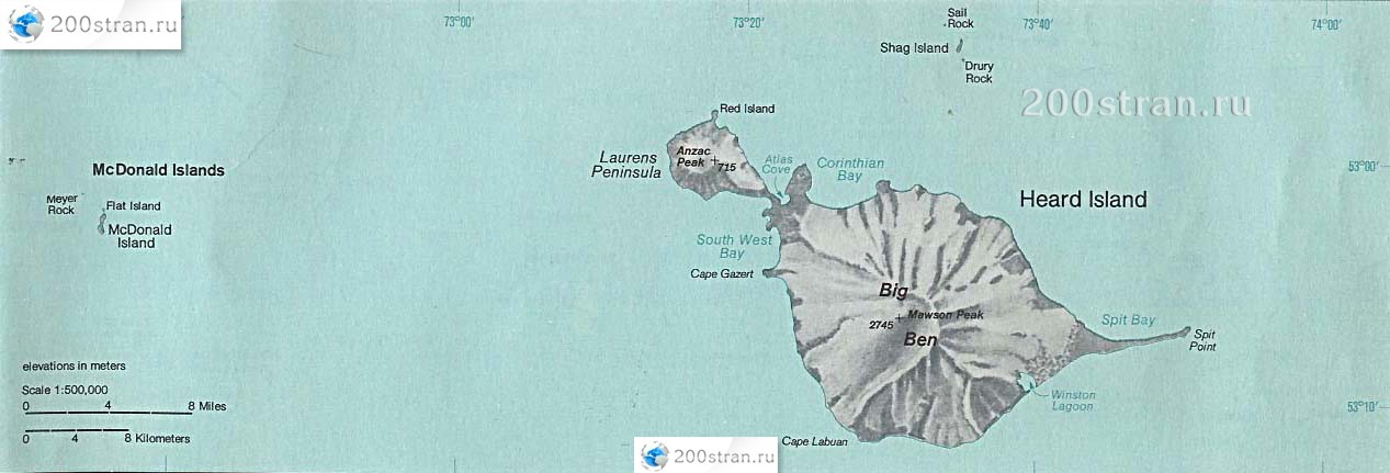 Карта островов Хэрда и МакДональда | Map and McDonald Islands Hurd