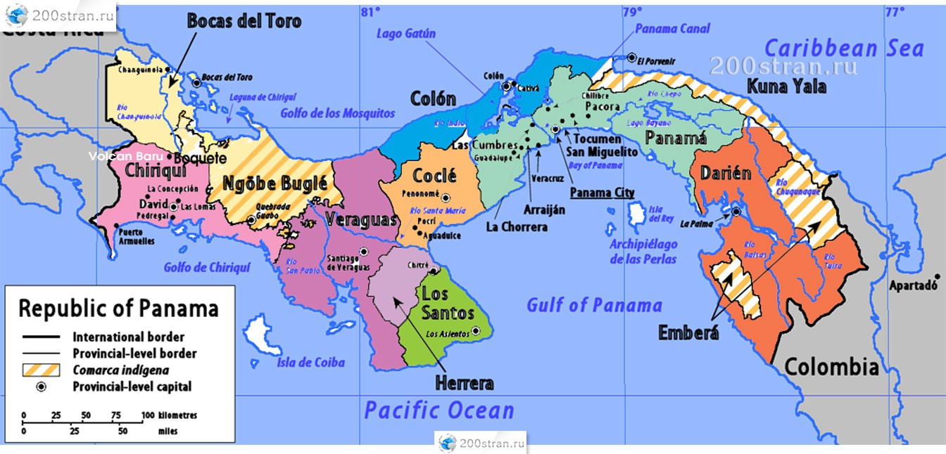 Административная карта Панамы с провинциями | Administrative map of Panama with the provinces