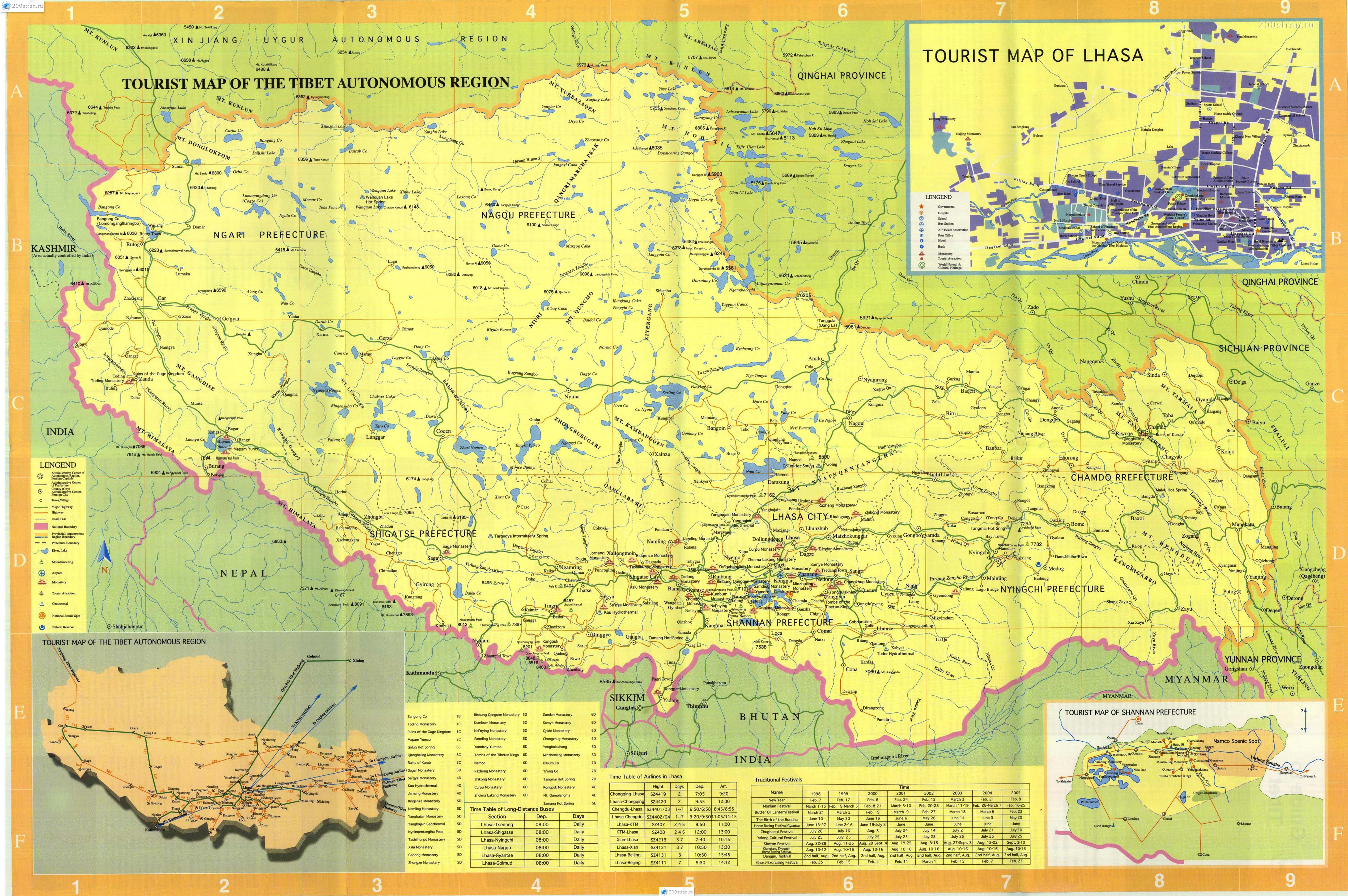 Туристическая карта автономного региона Тибет | Tourist Map of Tibet Autonomous Region