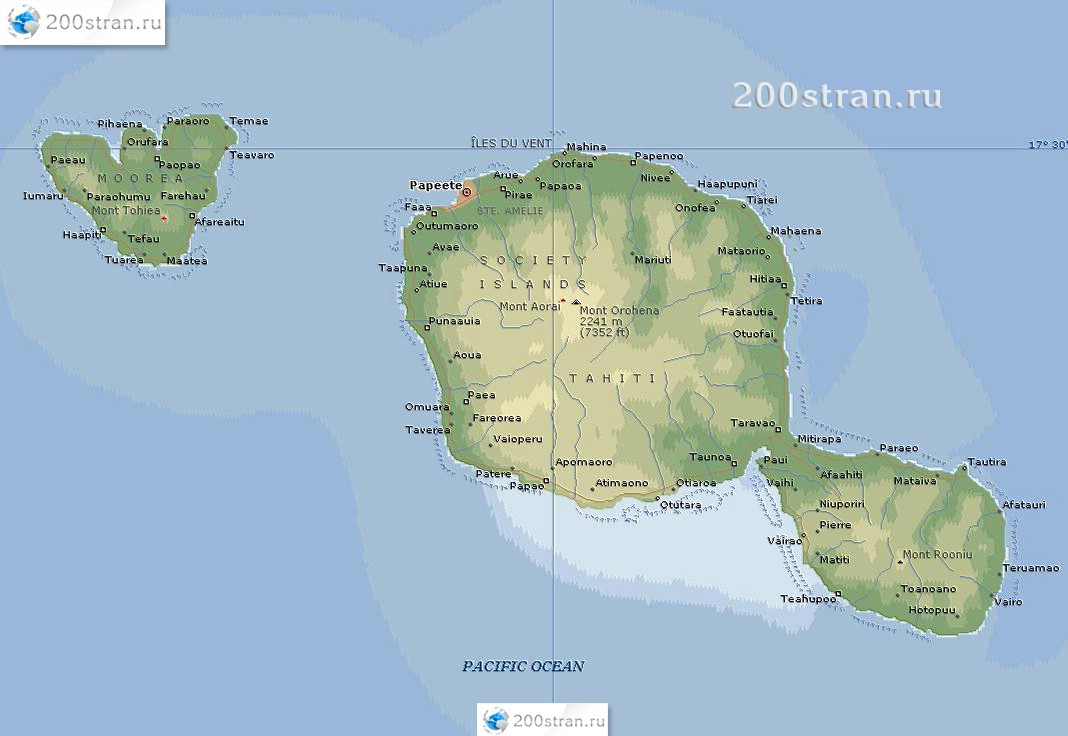 Карта островов Таити и Муреа, Полинезия | Map of the islands of Tahiti and Moorea, Polynesia
