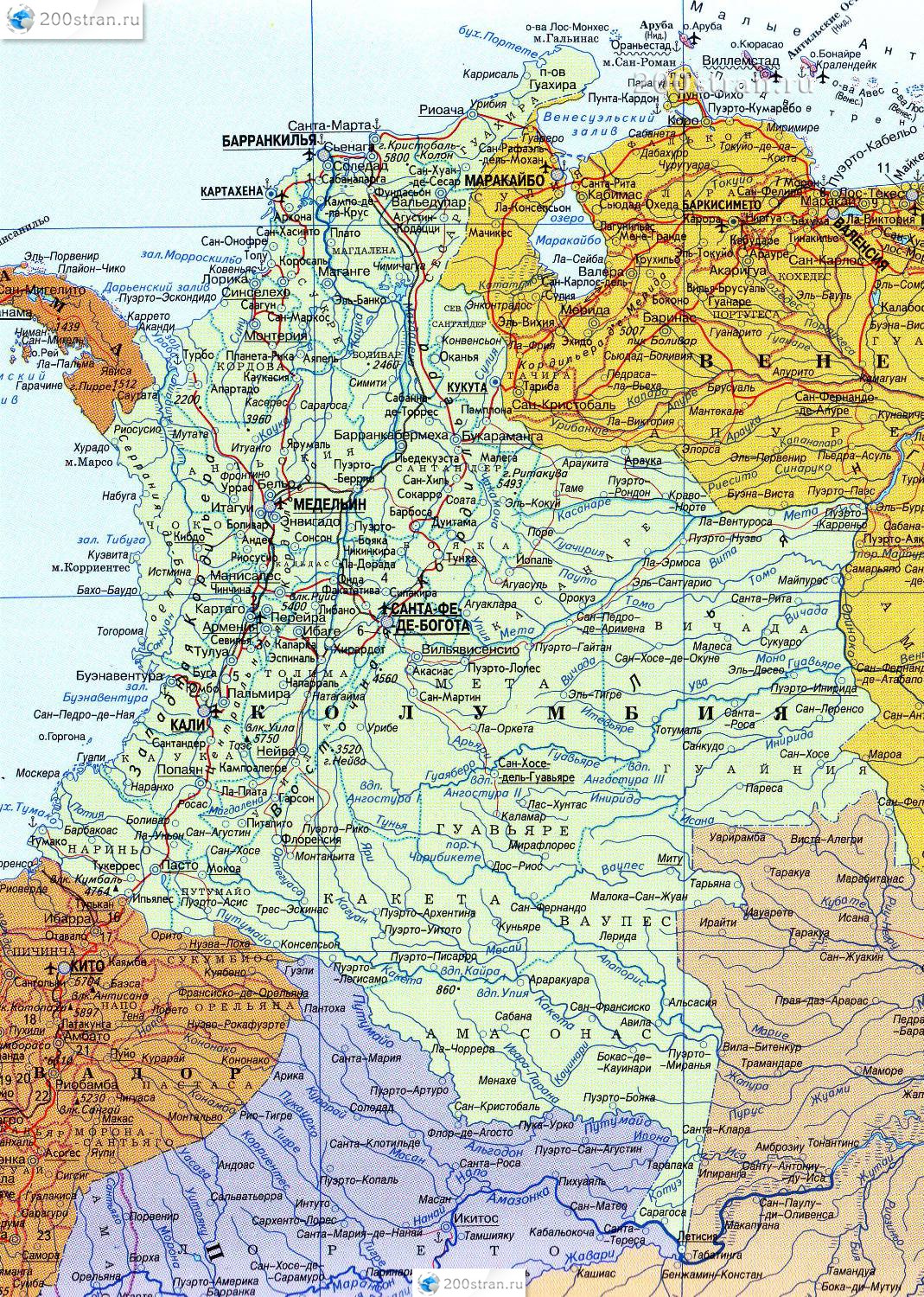 Карта Колумбии на русском языке | Map of Colombia in Russian