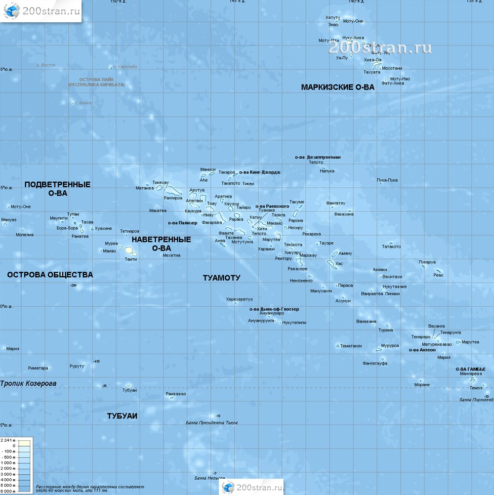Карта Французской Полинезии на русском языке | Map of French Polynesia in Russian