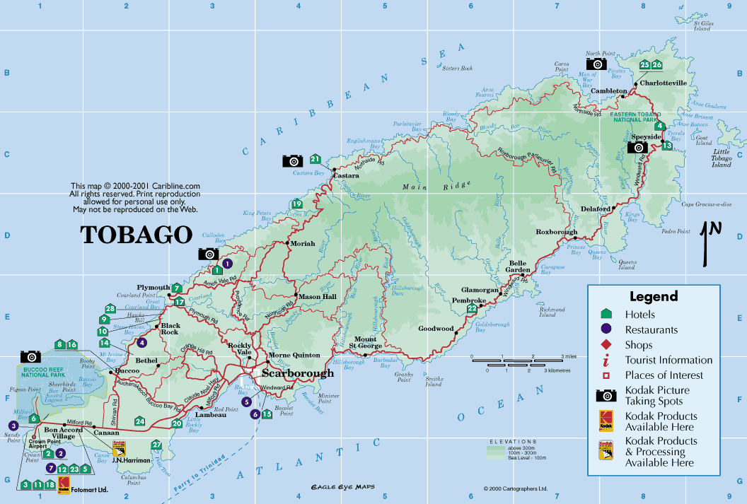 Карта Тринидада и Тобаго (остров Тобаго)