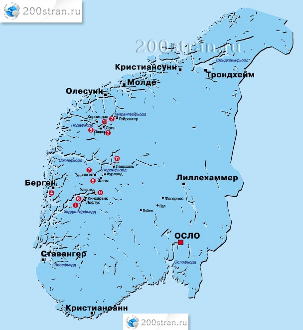 Карта норвежских фьордов