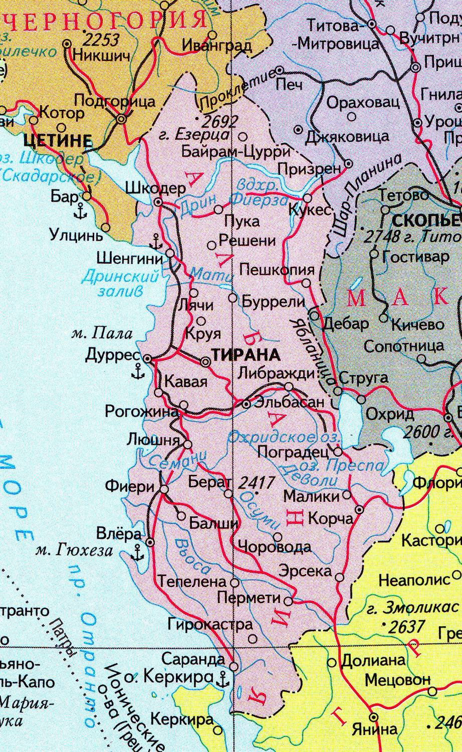 Карта Албании на русском языке