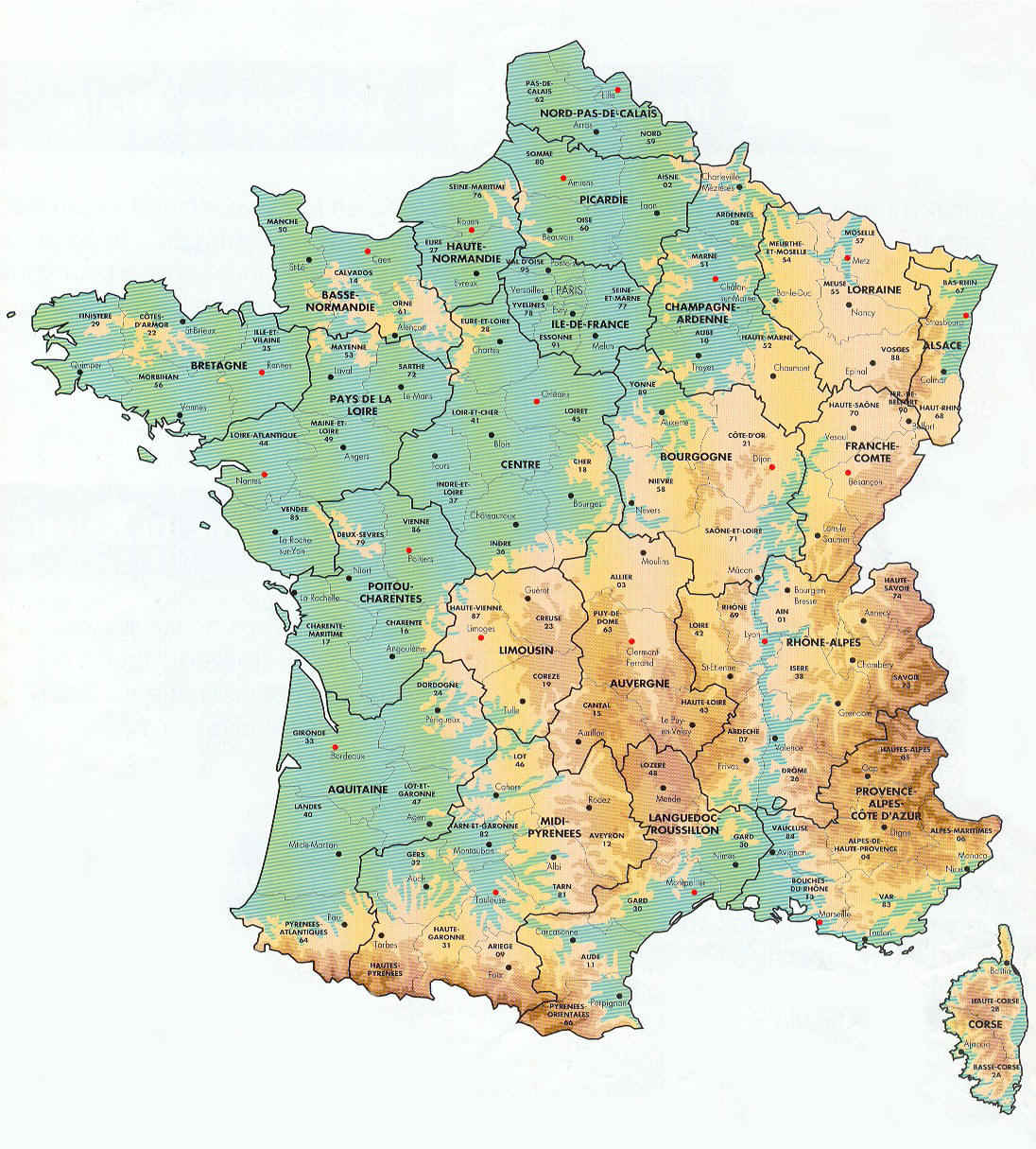 Физическая карта Франции с провинциями