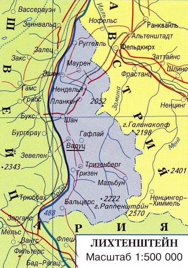 Карта Лихтенштейна на русском языке