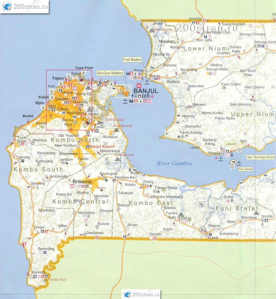 Карта западной части Гамбии | Map of the western part of the Gambia