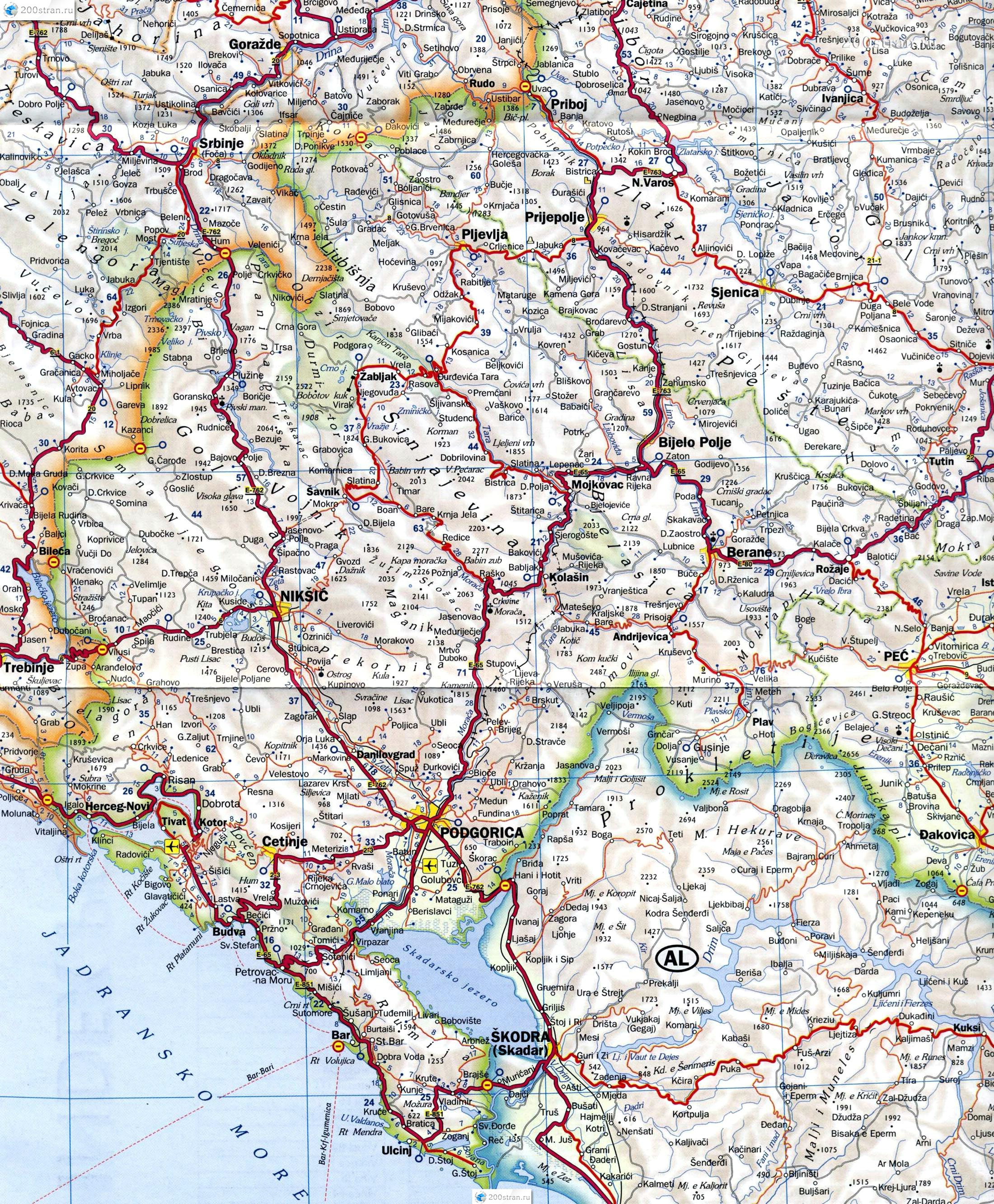 Большая карта Черногории
