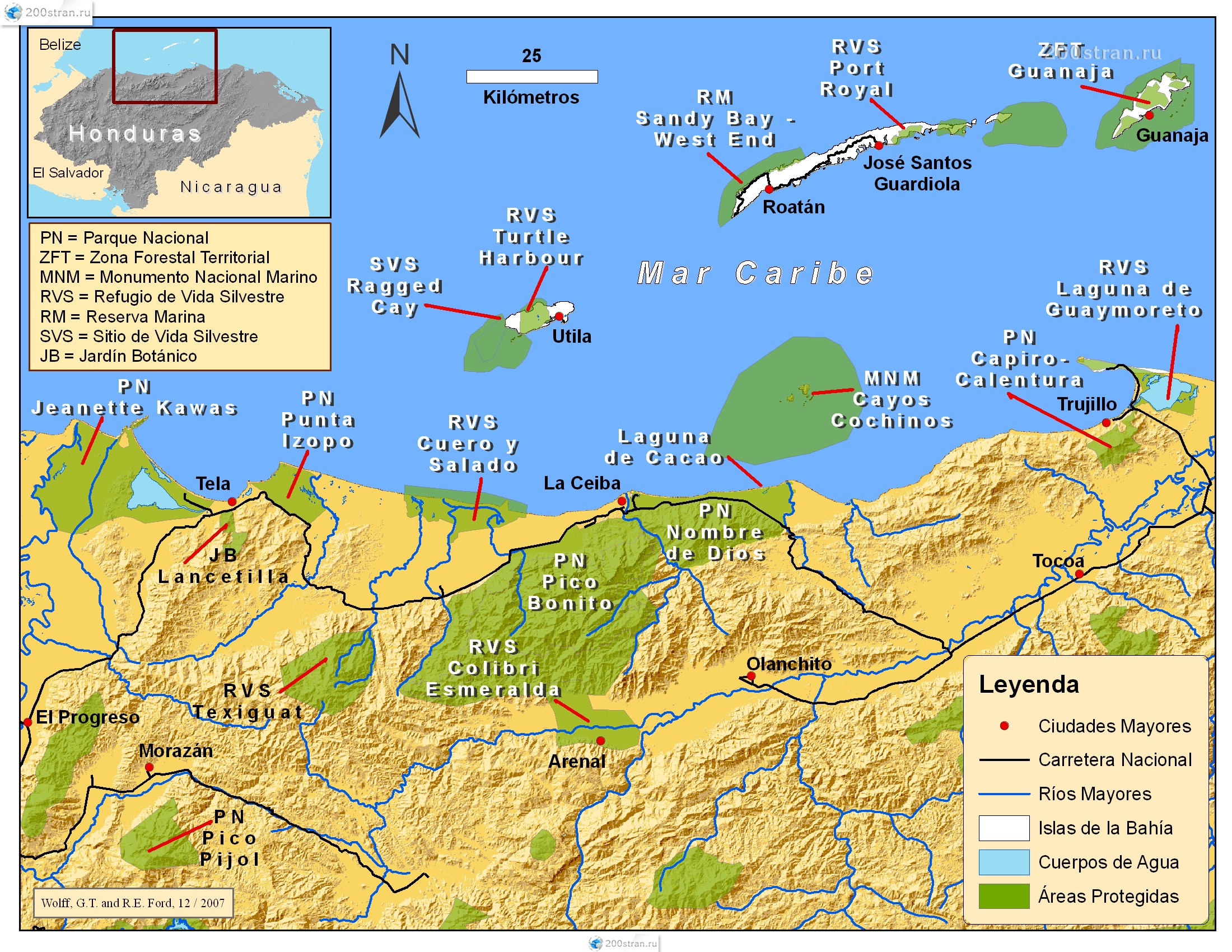 Карта природных охраняемых зон севера Гондураса | Map of natural protected areas of northern Honduras