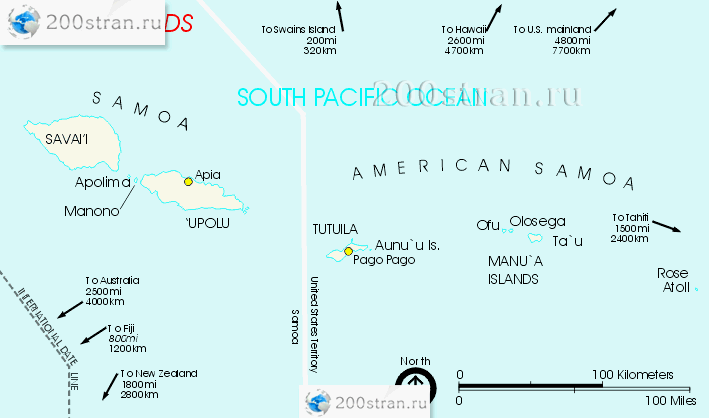 Карта Самоа (Американское и Британское) | Map of Samoa (American and British)