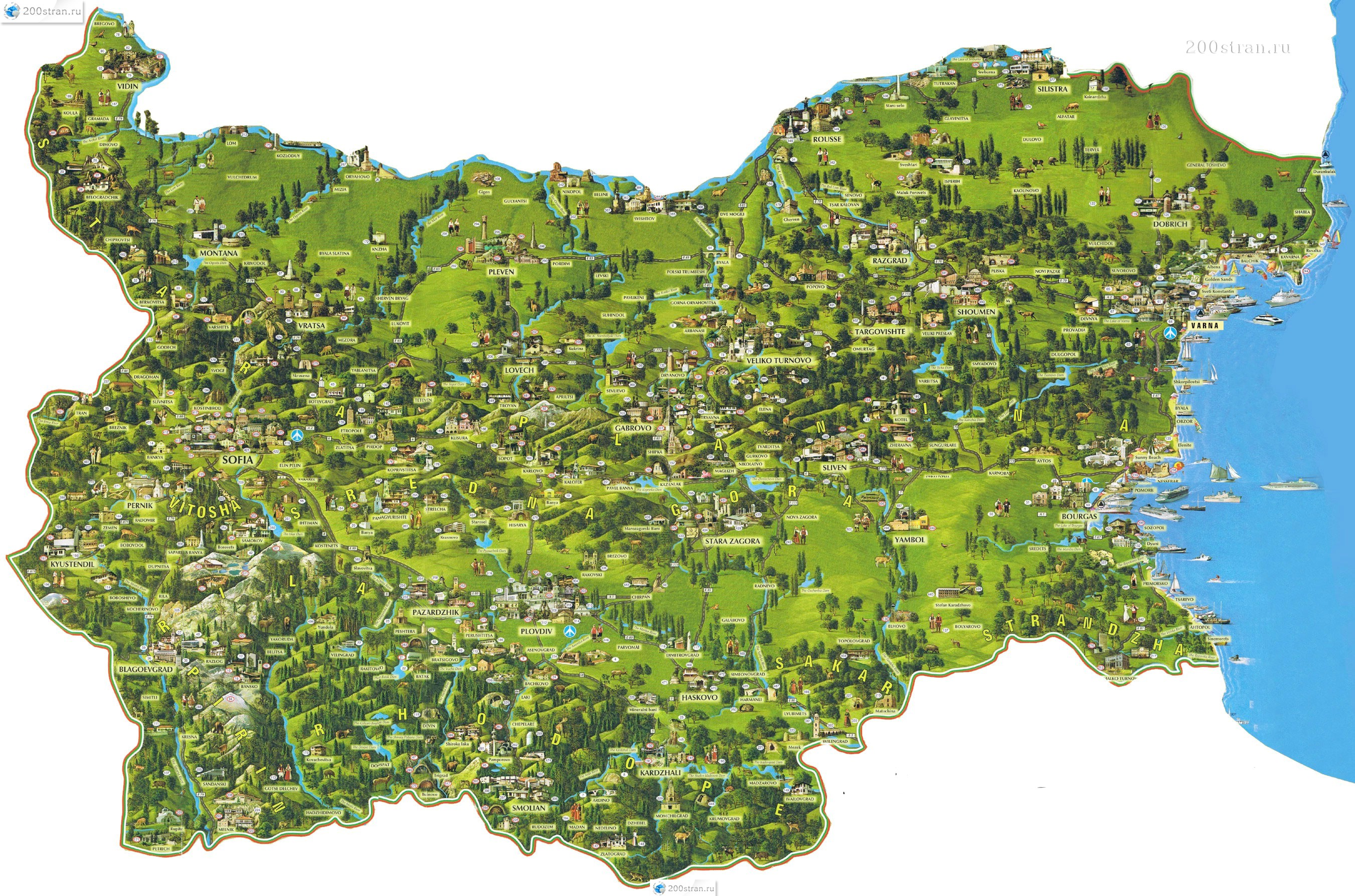 Очень красивая туристическая карта Болгарии | Very beautiful tourist map of Bulgaria
