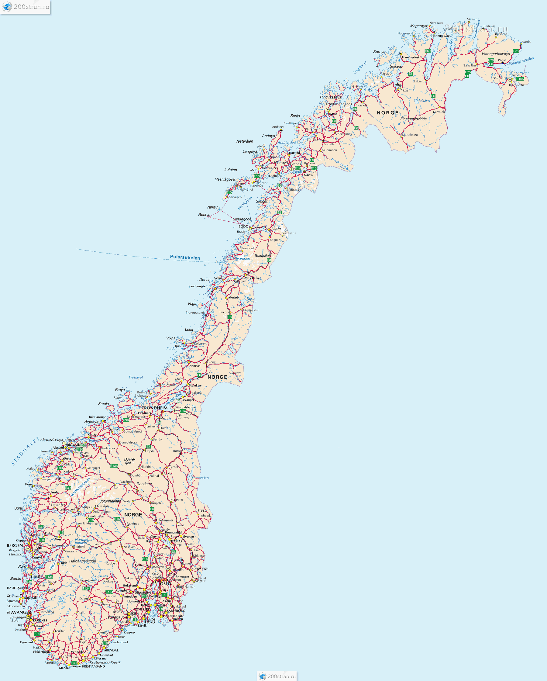 Карта атомобильных дорог Норвегии | Highway map of Norway