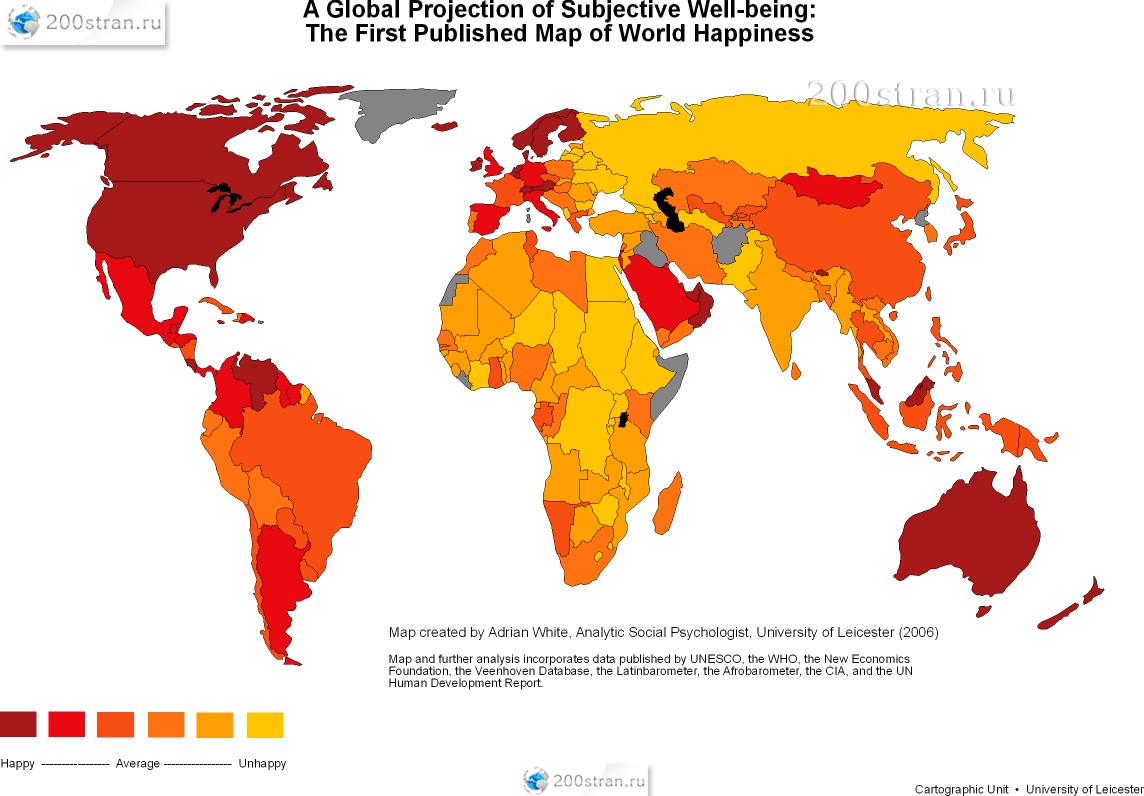 Карта распределения счастливых людей по планете | Distribution map of happy people on the planet