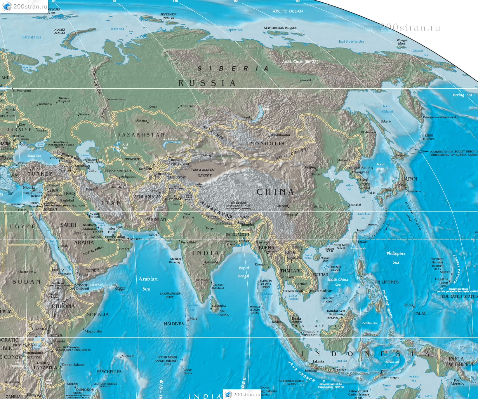 /   Азия   /   Физическая карта Азии