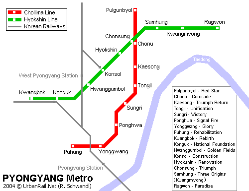 / Схемы метро городов Северной Кореи (КНДР) / Схемы метро города Пхеньян / Схема метро Пхеньяна